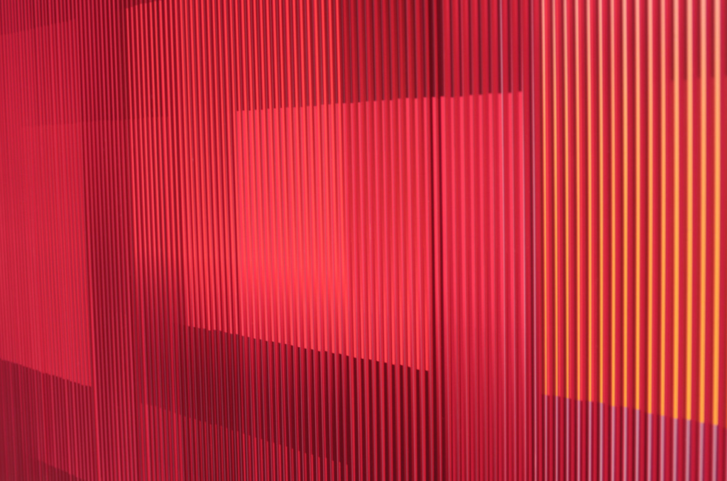 Les composantes de l’œuvre ne sont jamais permanentes. Elles se fragmentent, se recomposent, générant des géométries latentes et des rythmes variés au gré de la lumière du jour, des éclairages, de l’ambiance du lieu. Les tableaux « bougent » littéralement sous notre regard.