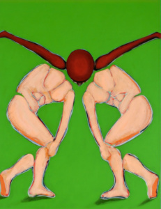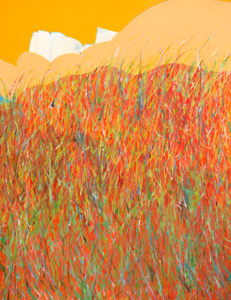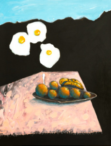 Sous son regard oblique et ses pinceaux inventifs, ses objets prennent la tangente. Ils sont encore dans le champ de la figuration mais se mettent parfois à flirter avec l’abstraction. Qu’est-ce qui fait passer les formes de l’une à l’autre ? Très peu de choses en réalité : un zoom, un léger décadrage, une inversion, une autre manière de regarder et la figure devient abstraite, au sens étymologique latin : abs-traites, c’est-à-dire tirées de. Tirées d’où ? Du réel et des interprétations infinies que l’art en propose. Pas de frontière donc entre le figuratif et l’abstrait, mais une zone de passage qui, dans cet espace fluide de légère indétermination, dit l’importance et la fécondité de l’entre-deux.