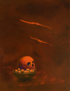 Les fonds noirs donnent le ton à une grande partie de ce nouveau cycle de travaux. Pourquoi le noir qui gomme tout contexte autour des objets ? Pour la radicalité et l’énergie du noir peut-être. Pour le degré supplémentaire d’abstraction qu’il apporte. Et pour l’idée du vide qu’il véhicule, lié au souffle vital originel. Car comme le dit si bien François Cheng parlant du vide dans l’optique chinoise (Vide et plein, le langage pictural chinois, Points, 1991) : « Le Vide n’est pas, comme on pourrait le supposer, quelque chose de vague ou d’inexistant, mais un élément éminemment dynamique et agissant».