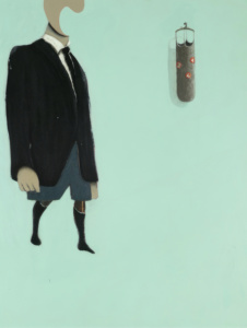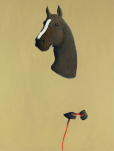 Les nouvelles peintures d’Emmanuel Perez sont tout sauf mortes. Mais pas sûr qu’elles soient immobiles et silencieuses non plus. Ses choses à lui vivent leur vie sur la toile, y prennent leur autonomie et y racontent leurs bribes d’histoires sans paroles sans trop se soucier d’être bien ressemblantes à leurs modèles, aussi loin des représentations symboliques et des décryptages savants façon Vanités du XVIIe siècle que de la banalité ordinaire des produits de la société de consommation version pop art. Ni portée allégorique ni constat sociologique. Alors simples prétextes à peindre ? En partie peut-être, mais surtout prétextes à dériver vers les territoires du rêve et des associations incongrues et fertiles. Tout aussi insolites et sibyllins que le sont les personnages et les animaux de ses autres séries de travaux, ses objets importent bien moins par leur réalisme, leur usage ou leur charge métaphorique que par leur qualité de présence, leur résonance, leur disposition à s’infiltrer dans nos espaces physiques et mentaux, leur don de déclencher des échos en nous et d’attiser nos imaginaires. Si le mot ne risquait pas de prendre une connotation mystique qui n’a pas sa place ici, on pourrait parler de leur aura ou leur halo de mystère et de promesses de vies plurielles.